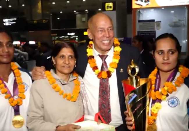 The Indian women's kabaddi team arrived to a rousing reception at the Indira Gandhi International Airport here on Tuesday after clinching the 2025 World Cup title with a 35-28 win over Chinese Taipei in Dhaka.
