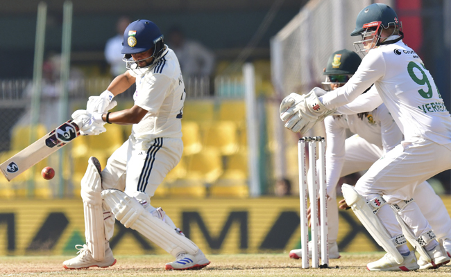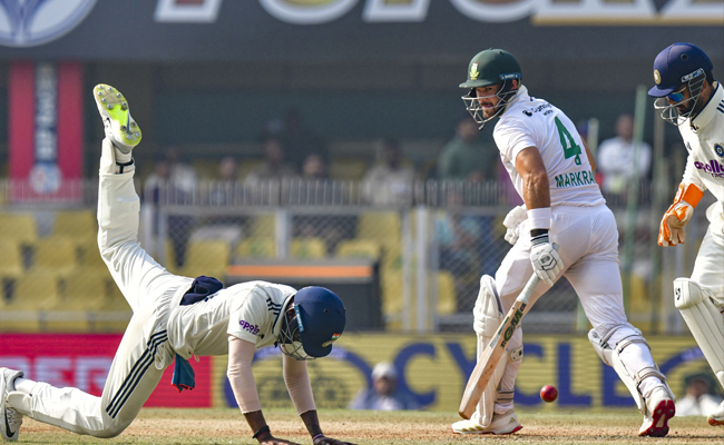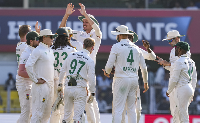 India spinner Ravindra Jadeja dismissed South African openers Ryan Rickelton and Aiden Markram as the visitors reached 107 for 3 at tea in their second innings -- taking an overall lead of 395 runs -- on day four of the second Test here on Tuesday.