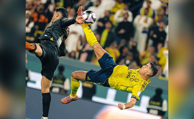 Cristiano Ronaldo gave another demonstration of his enduring quality by scoring from a bicycle kick for his Saudi Arabian club.