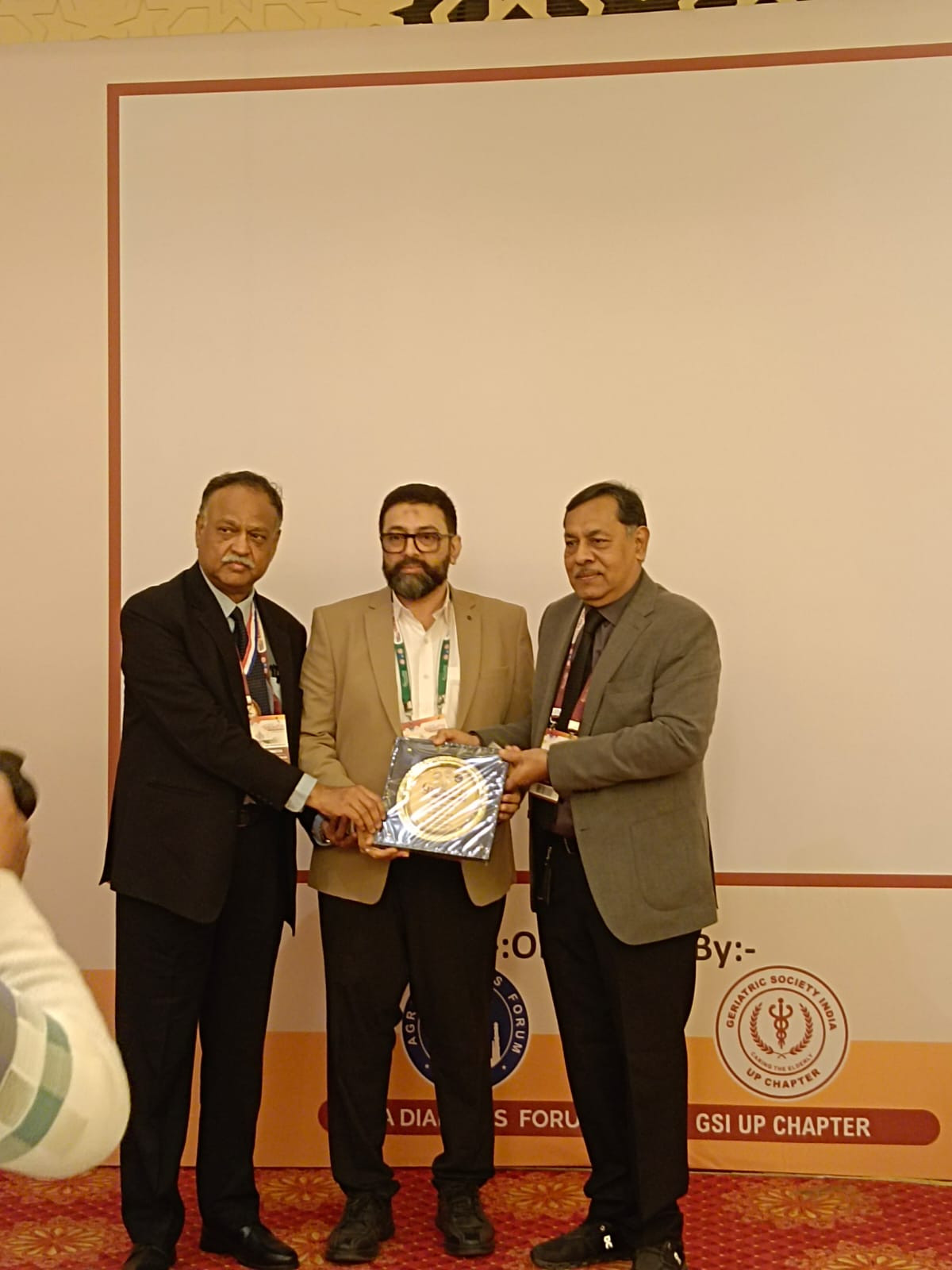 In recognition of his academic contributions to the field of geriatrics, Dr Haroon was honoured during the inaugural ceremony of the conference. The event was attended by Uttar Pradesh Higher Education Minister Yogendra Upadhyay, Padma Shri awardee Prof. Dr D. K. Hazra, Dr Prashant Gupta, Dr O. P. Sharma and other senior members of the Geriatric Society of India and the GSICON 2025 organising committee. Dr O. P. Sharma, Secretary General of the Geriatric Society of India, was also acknowledged for his role in advancing geriatric medicine across the country.