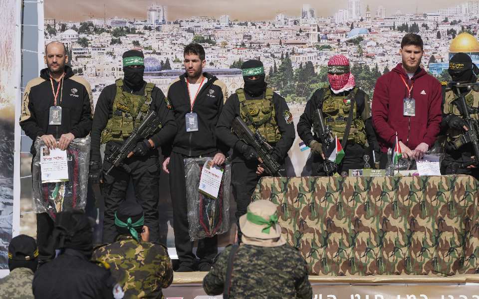 Khan Younis, Feb 15 (AP): Hamas-led group released three male Israeli hostages Saturday and Israeli forces freed hundreds of prisoners in return, in the latest indication that a fragile ceasefire that had teetered in recent days is holding.