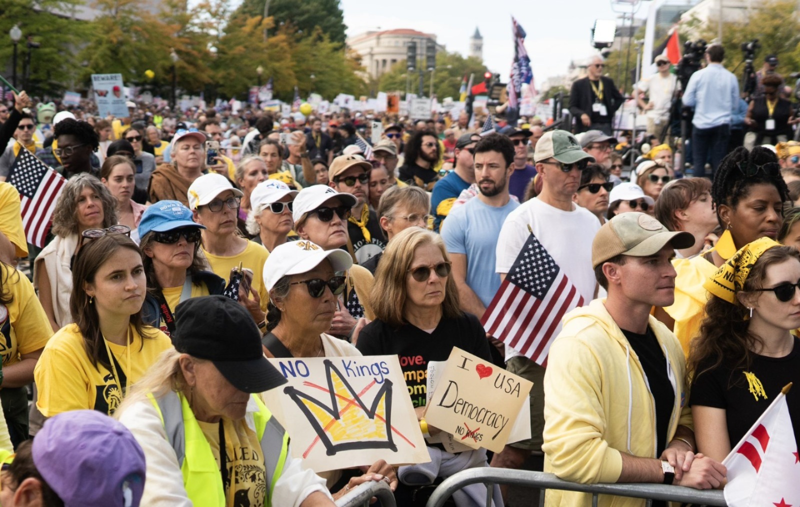 Large crowds of protesters marched and rallied in cities across the US Saturday for "No Kings" demonstrations decrying what participants see as the government's swift drift into authoritarianism under President Donald Trump.