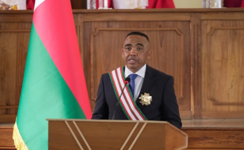 An army colonel who seized power in a military coup was sworn in as Madagascar's new leader Friday in a lightning-fast power grab that ousted the president and sent him fleeing from the country into hiding.