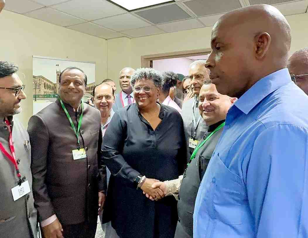 Hon’ble Chairman of the Karnataka Legislative Council, Basavaraj Horatti, and Hon’ble Speaker of the Karnataka Legislative Assembly, U. T. Khader, met the Prime Minister of Barbados, Hon. Mia “Ma” Amor Mottley, SC, MP, during their official visit to Barbados to attend the International Speakers’ Conference.