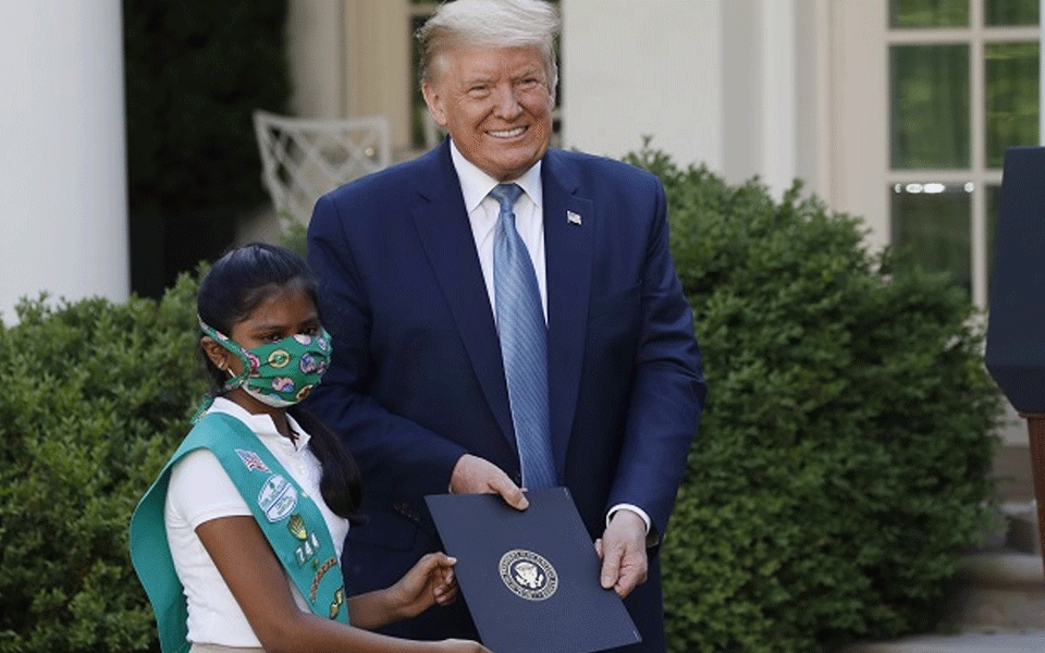 Sravya Annappareddy, a 10-year-old Indian-American girl, has been honoured by President Donald Trump for donating cookies to nurses and firefighters and sending personalised greeting cards to healthcare workers fighting COVID-19 pandemic in the US, the worst affected country in the world.