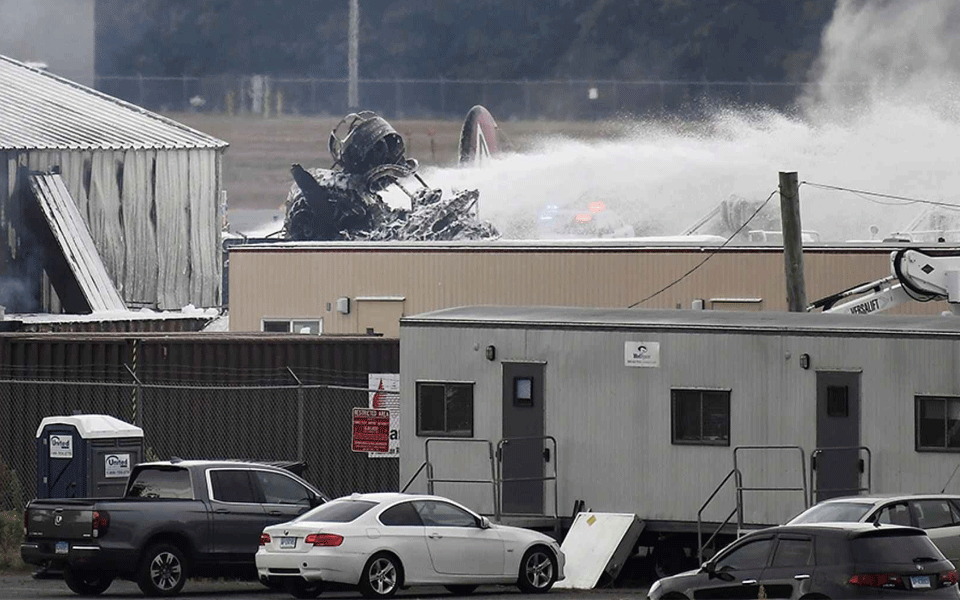 A World War II-era B-17 bomber carrying 13 people crashed and burned at the Hartford airport in an aborted takeoff attempt Wednesday, and a state official said at least five people were killed.